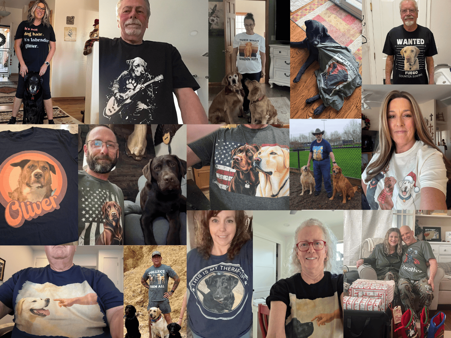 Dogs are more than pets: they’re best friends, sock thieves, snack assistants, and heart healers. We create shirts that let you wear that love out loud. Whether it’s a silly dog pun or a design that looks just like your dog, our products are made to spark smiles and tail wags.